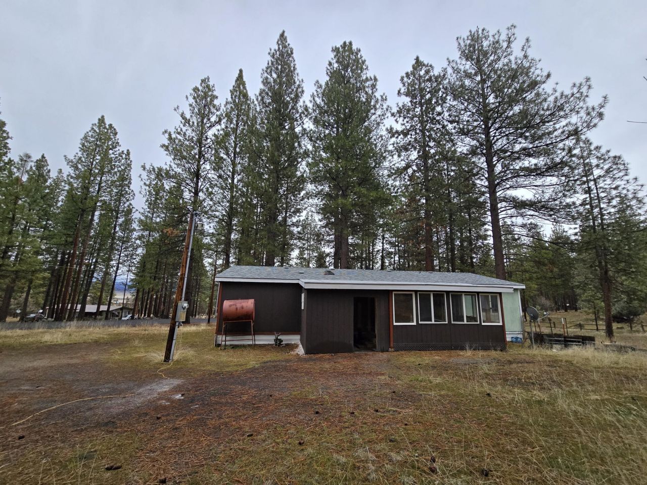 Escape to your private nearly one-acre Oregon retreat, where the serenity of the pines meets modern convenience. This updated two-bedroom home is a dream for outdoor enthusiasts, located just minutes from river access and expansive public land trail systems. Equestrian lovers will appreciate the zoning for horses and an existing stable, while a dedicated workshop offers the perfect space for any craftsperson. The property shines with extensive recent upgrades, including a brand-new county-permitted Trex deck (2025), a 2023 roof, new vinyl windows, and all-new appliances. Inside, vaulted ceilings and a certified wood stove create a cozy, open atmosphere. The level, wooded lot offers true privacy on a paved road, complete with a sunroom and carport